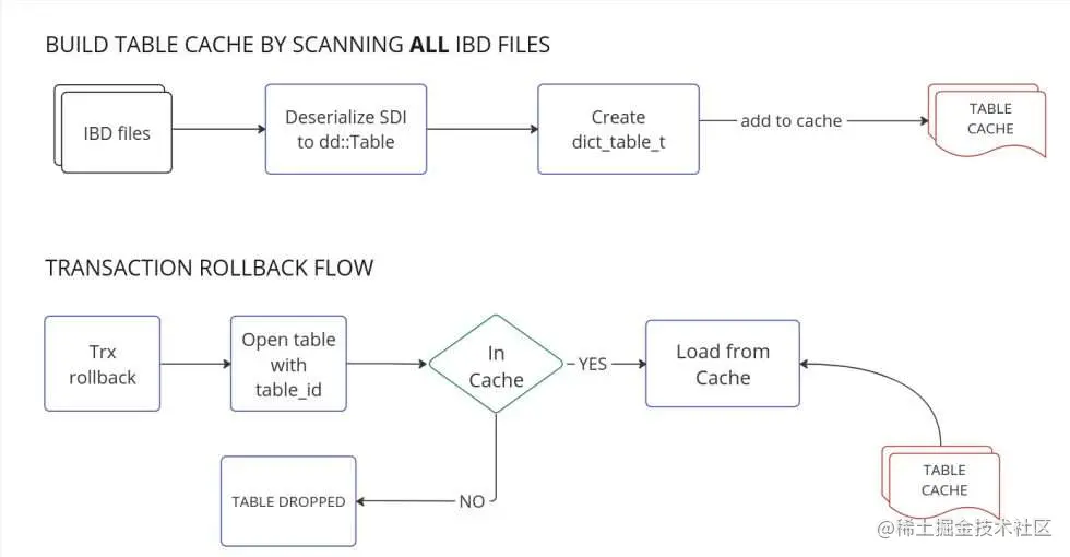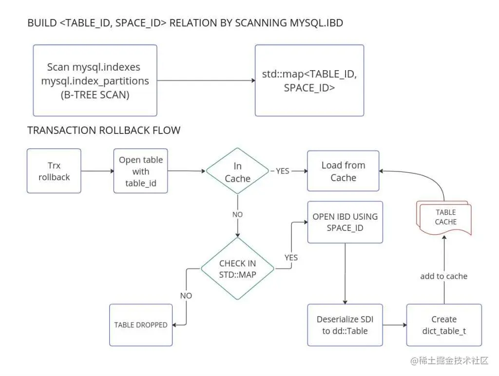 建立此 table_id→space_id 关系后,它将在事务回滚期间使用。在这种新设计中,只有在它们上面有事务回滚时,才会加载用户表。