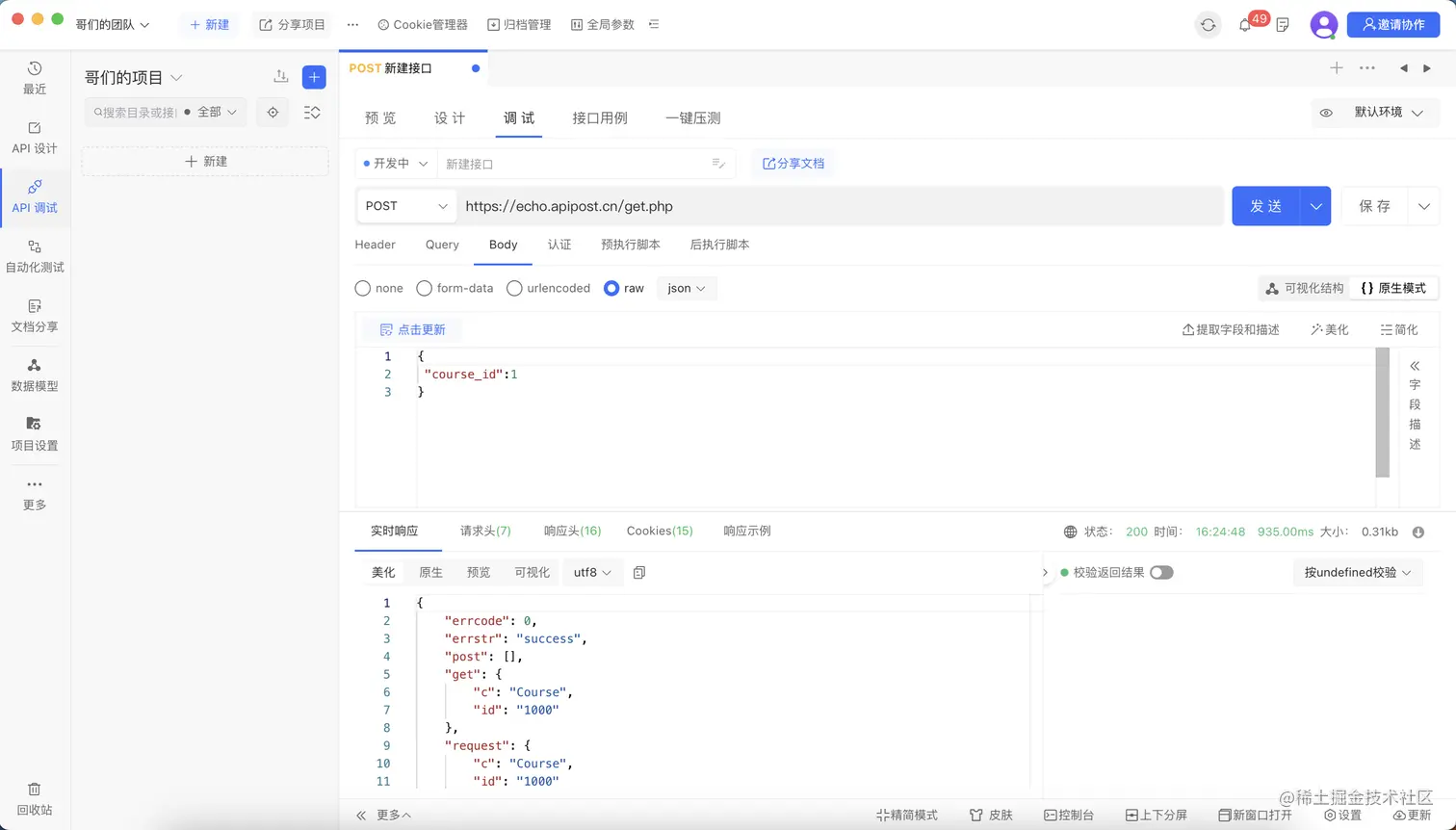 完成以上操作即体验了第一个接口文档的旅程。Apipost还支持API设计、API测试等多种功能欢迎体验!