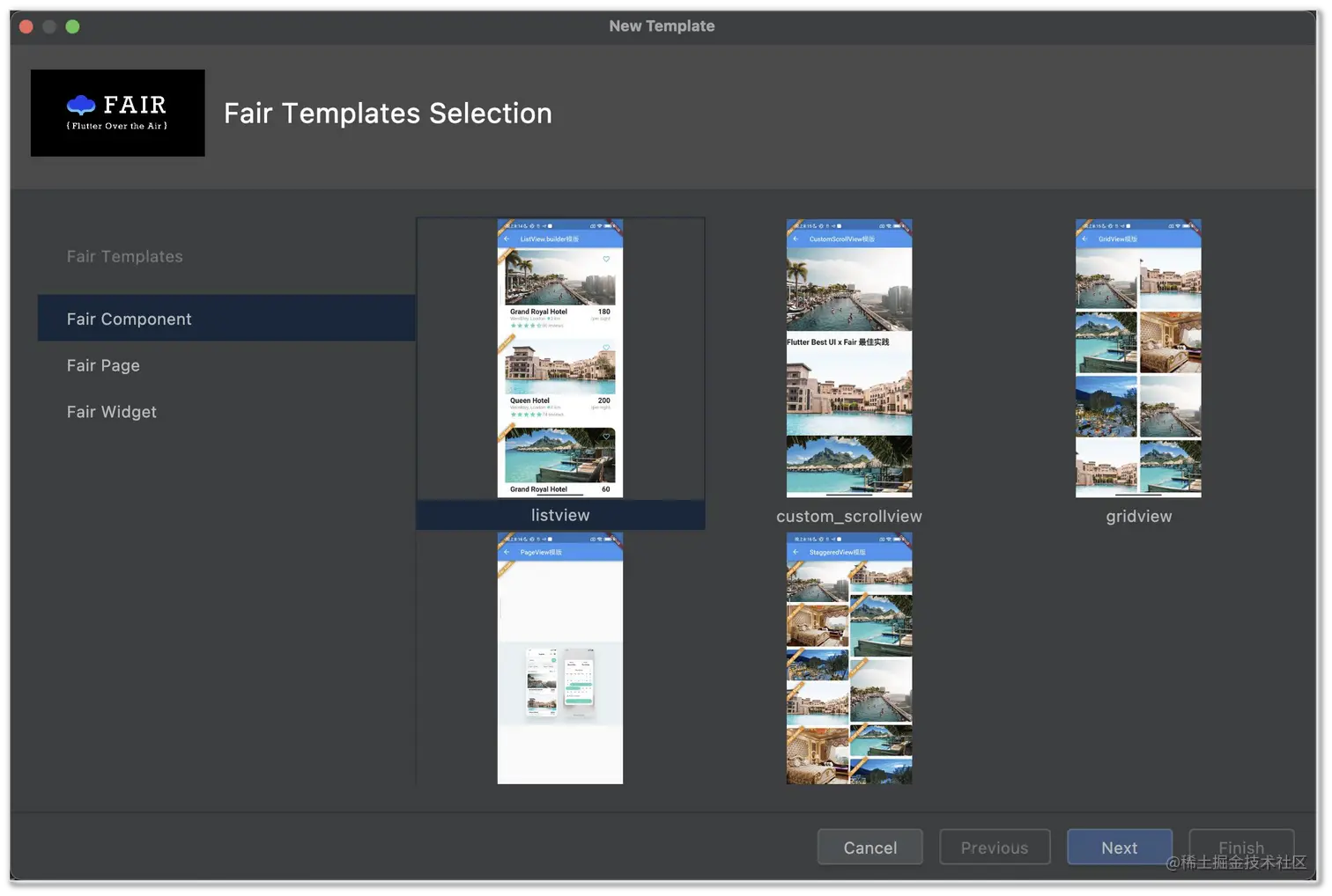 下载 Fair 模板插件,可以通过 idea 直接选择模板页面进行二次开发。