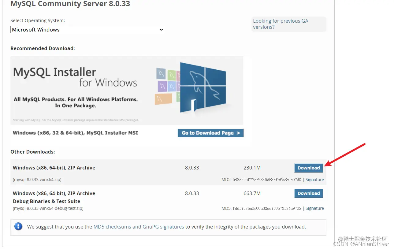 1.在官网下载合适版本的MYSQL ZIP包