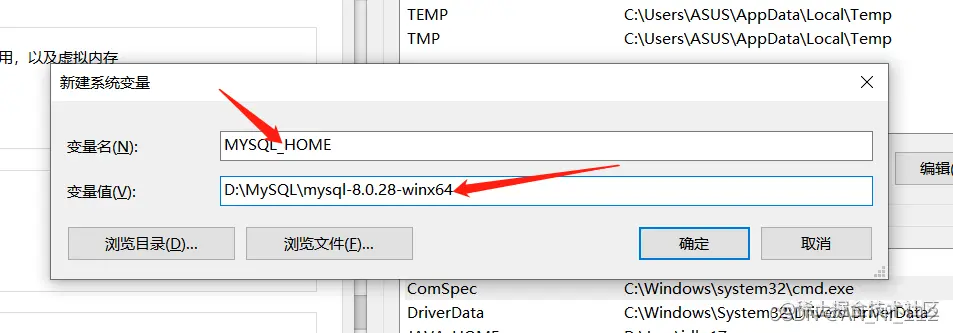 3.将对应的bin目录(D:\MySQL\mysql-8.0.28-winx64\bin)配置到环境变量PATH
