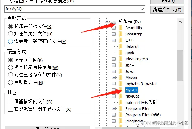 2.推荐解压安装到D盘,建一个MySQL的文件夹