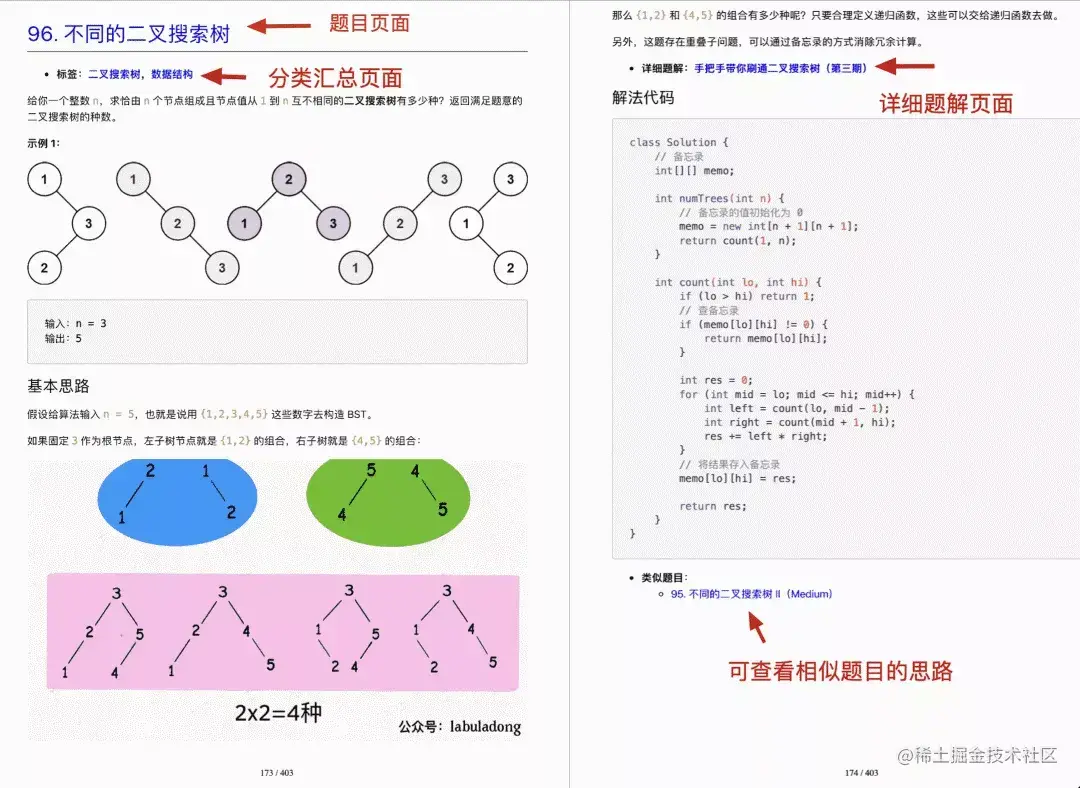 所以除了公众号的老读者外,阅读这本《刷题笔记》之前建议先读完《算法秘籍》。因为这本刷题笔记的主要作用是复习巩固算法秘籍中的各种算法技巧,帮助你高效复习:如果看了题目不能迅速想到解题思路,或者看了思路写不出代码,那就说明这块知识点掌握的不太好,需要重新复习巩固。