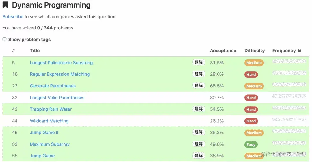同时,在题目首页或者题目分类页面,插件会标记所有有题解的题目为绿色: