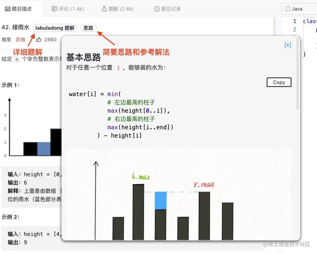 这个刷题辅助插件完美融合了上述两本 PDF 的内容,能够在力扣题目页面显示《算法秘籍》中对应的详细题解和《刷题笔记》中的简明思路(也支持英文版 LeetCode),是建议每个读者都安装的: