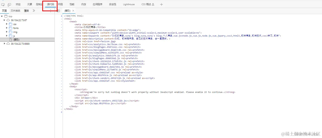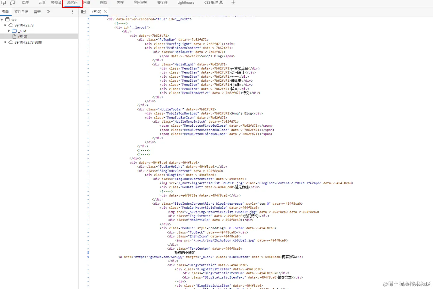 如下为使用Nuxt打包成静态页面前后,网站sources面板看到的html