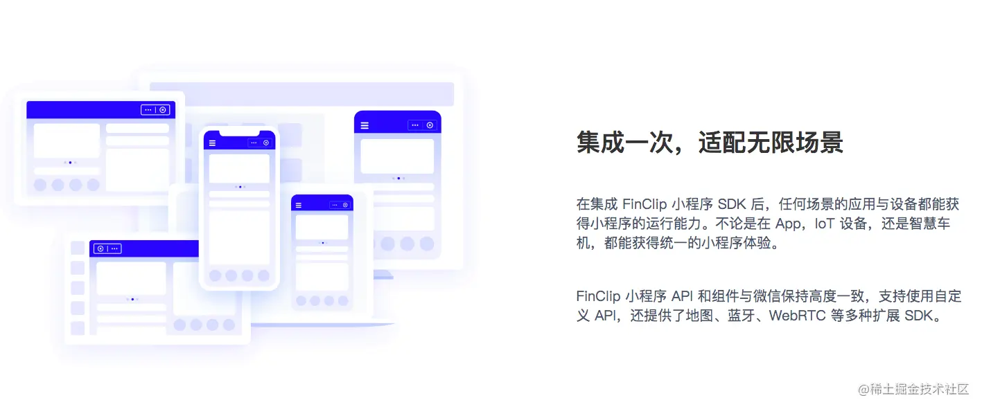 这里还要推荐一个深化发挥小程序价值的途径,直接将现有的小程序搬到自有 App 中进行运行,这种实现技术路径叫做小程序容器,例如 FinClip SDK 是通过集成 SDK 的形式让自有的 App 能够像微信一样直接运行小程序。