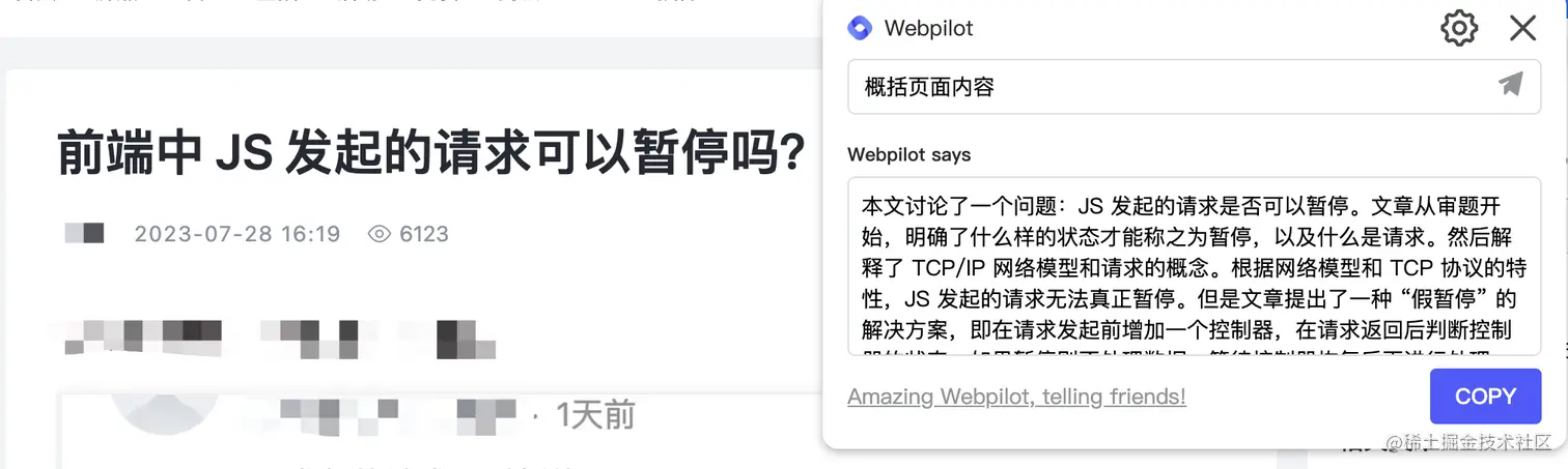 经常看技术博客的朋友,可能对Webpilot并不陌生。这是个能对网页内容提问的AIGC浏览器插件。