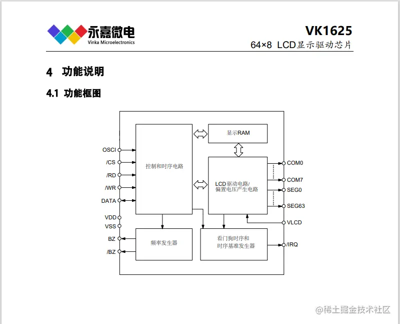 VK1625是一个点阵式存储映射的LCD驱动器,可支持最大512点(64EGx8COM)的LCD屏。
