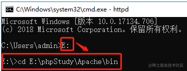 第六步、win+R,输入cmd,打开命令行窗口,切换目录到你原来的Apache下面