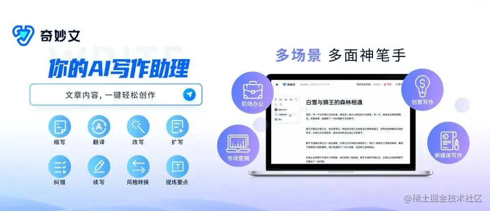 AI写作助理「奇妙文/魔撰写作」能够用AI帮助内容创作者撰写营销、剧本、工作报告等多种文案;