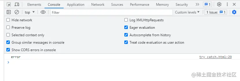 console.log(err) // 输出error(控制台未报错)