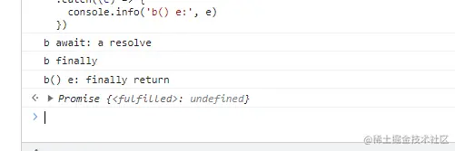 跟上面的demo小小变化,finally没有return,b.catch中也没有return,那b().then后面是怎么执行的呢?
