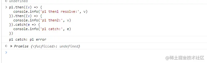 console.info('p1 then2:', v) // 输出