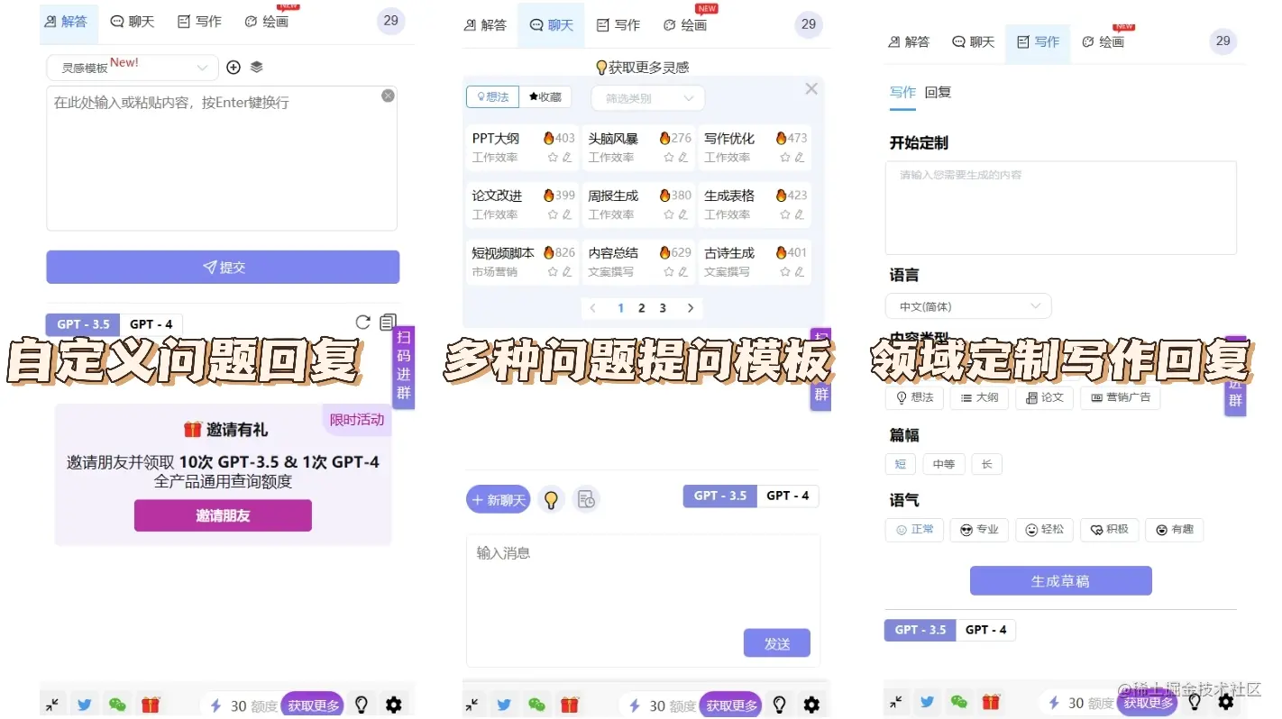 - 提供问题领域提问模板,拥有GPT3.5和GPT4模型