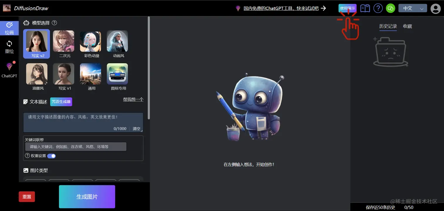 使用方便,在聊天界面选取相应问题类型,输入主题即可得到AI生成的答案。