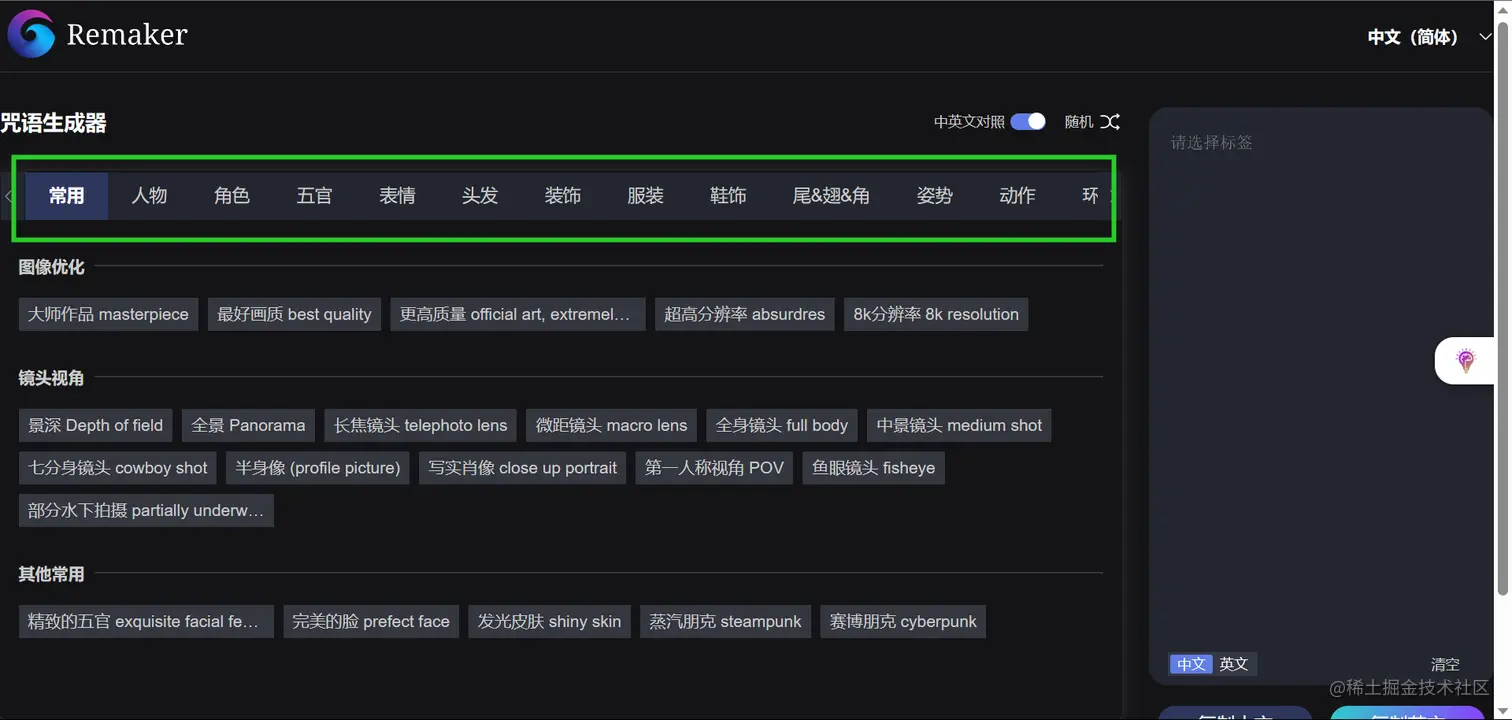 这款AI绘画插件在使用时支持多种形式的绘图,例如,文生图、图生图、图片变体。使用文生图,如果你觉得你的辞海匮乏可以直接选择咒语生成器,内容分类细致,总有一个词语是你所需要的。