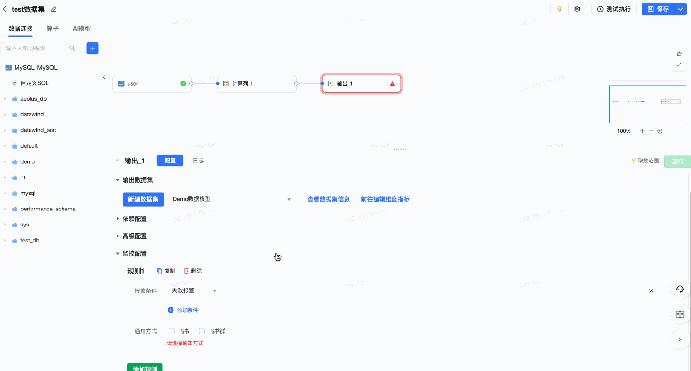 数据集和可视化建模的运行任务监控支持通知到飞书群,让用户能够及时了解数据处理任务的运行情况,如果遇到异常,也能及时处理,保障后续分析链路的顺畅进行。