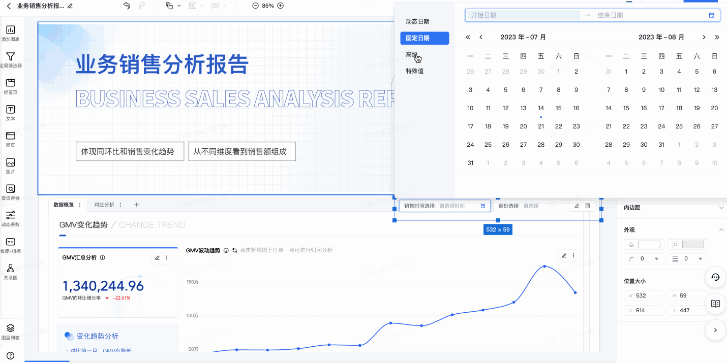 业务分析的角度是多样的,不同时间周期之间的指标需要对比,不同团队或城市之间的业绩完成度也各不相同,消费者或客户的交易或行为习惯也会发生变化,因此,使用灵活的筛选器,快速切换分析视角,对于业务洞察来说是家常便饭。对此,智能数据洞察也进行了大量迭代,具体新功能包含如下:
