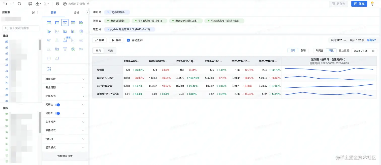 2023上半年,智能数据洞察的可视化查询模块新增了趋势分析表,现在您可以使用趋势分析表、迷你图、指标趋势图,组合分析业务指标,早一步洞察业务变化情况。