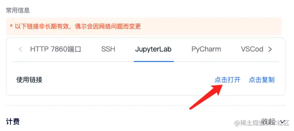 点击租用页面:JupyterLab 链接。