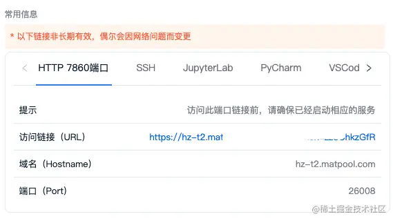 点击租用页面中的 7860 端口对应链接即可访问相关服务。