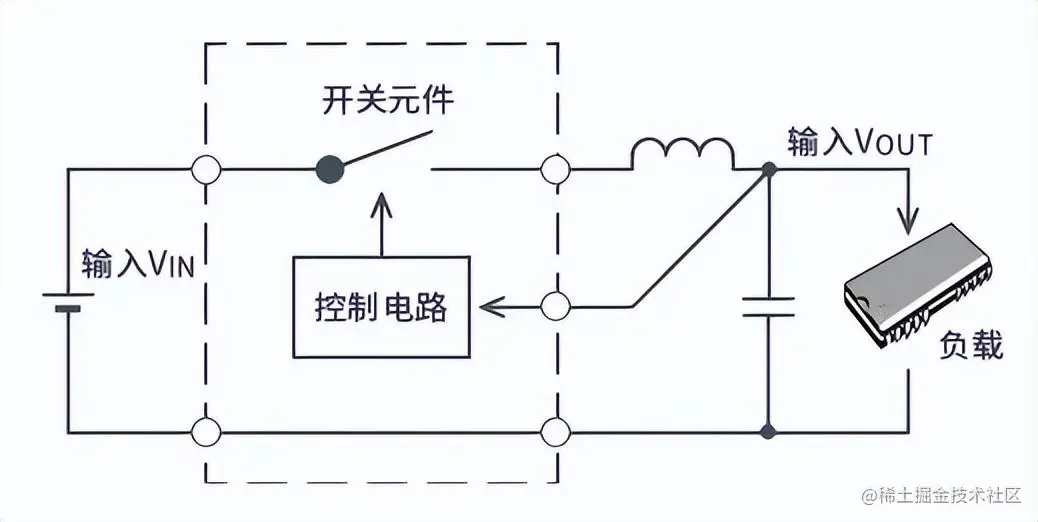 这样,反馈控制电路常时对实际输出电压值进行确认,并根据该值调整开关元件的ON/OFF时间,确保目标输出电压值的稳定。