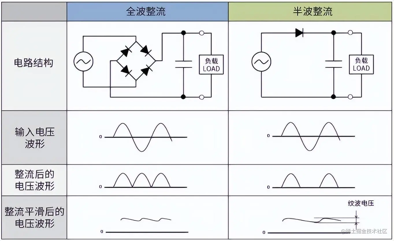 全波整流和半波整流在相同的电容器容量和负载条件下,全波整流的纹波电压更小。纹波电压越小,稳定性越高、性能越优。