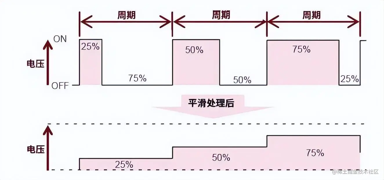 根据状况区分使用PWM和PFM可进一步提高效率,如高负载(使用电流)时使用周期恒定的PWM控制,轻负载(不使用电流)时使用周期变化的PFM控制。