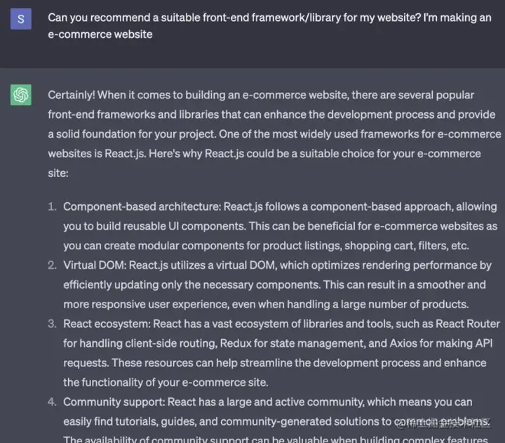 在开始项目之前选择正确的框架或库非常重要。它可以极大地影响项目的性能、可扩展性和复杂性。通常,很难决定使用哪个框架。但是,我们可以利用 chatGPT 来了解一下。