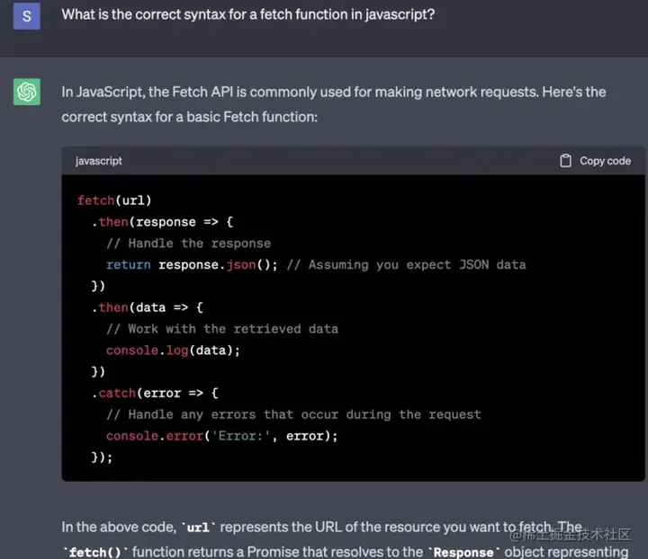 软件开发人员使用各种技术堆栈。因此,在学习新的堆栈时记住每种语言和技术的语法变得很困难。这正是 chatGPT 发挥作用的地方,它通过适当的示例为编程语言的元素提供正确的语法。