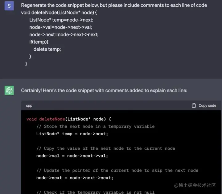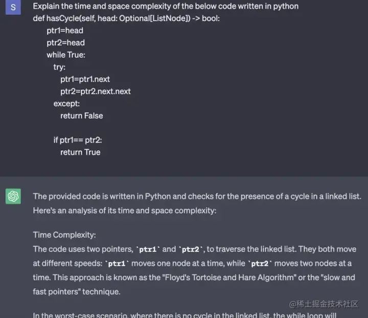 ChatGPT可以通过解释所需的概念来在这方面帮助我们。解释提示可用于理解一个概念、一段代码,或者算法的时间或空间复杂度。