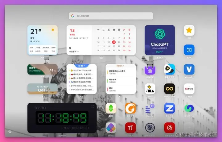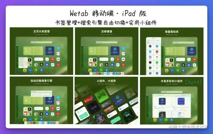 Wetab 已经提供了包括 AI 工具、日历、待办、天气、时钟、节日、倒计时、纪念日、电影日历、时钟、换算器、每日一言、游戏、习惯养成、历史上的今天、汇率、股票、NBA 赛事、游戏、书签等在内的 30 种小组件。
