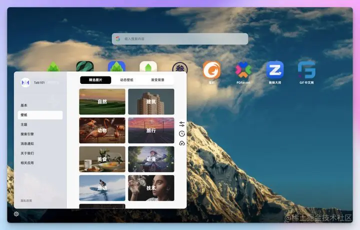 干净纯粹。标签页界面只有一个设置和添加➕两个按钮。而左侧的主页面板、底部的 Dock 栏均支持自动隐藏。标签页产品无任何广告,体验纯粹。