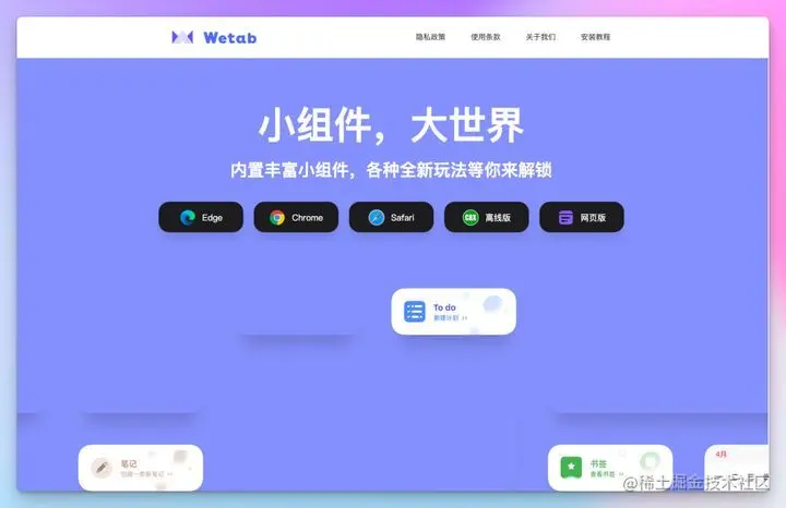 - Wetab 标签页:内置丰富小组件的标签页。Wetab 网页版见传送门。