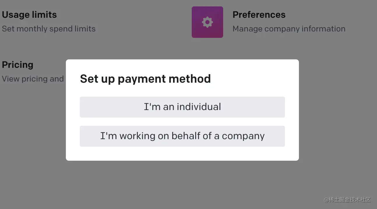 我选了「I'm an individual」个人的,然后弹出的窗口是用来填写你的海外信用卡相关信息(暂时不支持国内的哇)。