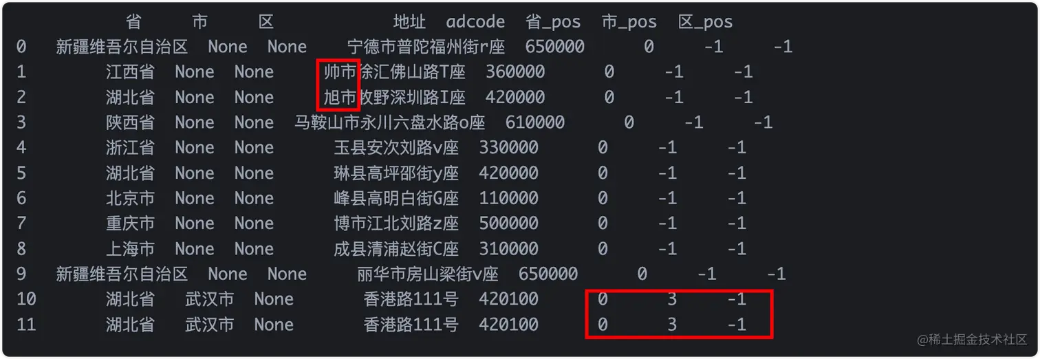 可见效果还是很nice的,基本上省、市、地址都能很好的提取出来,可用于部分的demo展示;地址信息完整的话,也可以用于实际的生产。但是可以看到部分地址的市、区信息没有提取出来。因为地址是虚造出来的,地址的准确性也没有得到检验。