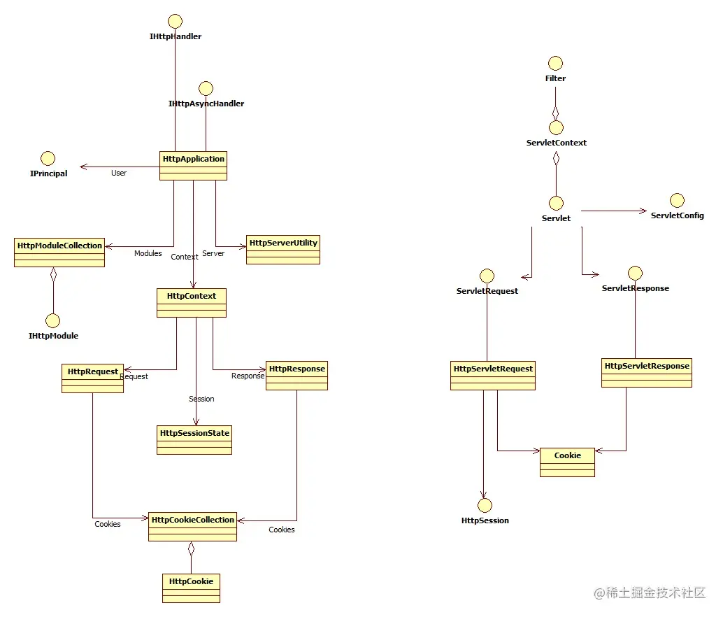 ASP.NET的核心对象不像Java Servlet一样,从一开始就基于接口,这是缺点。但Java Servlet的核心对象全靠容器实现,就连HttpSession同样如此,这也是缺点。比如自定义个Session十分麻烦,没有像ASP.NET一样简单配置即可。另外Servlet的一些抽象定义有点过头了,不够简洁。