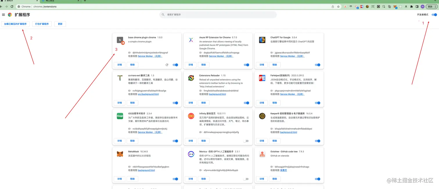 我们打开chrome浏览器,扩展程序>打开开发者模式>加载已解压的扩展程序这个文件夹即可