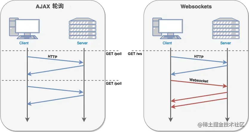 - 带宽问题:WebSocket 相对于 HTTP 来说协议头更加小,同时按需传递。