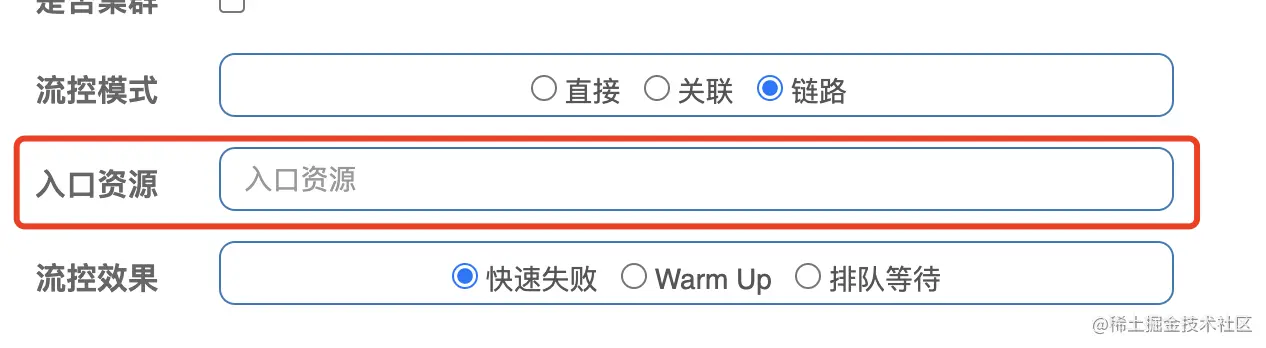 关联入口的意思就是指,当访问资源的实际入口跟关联入口是一样的时候,就会根据这个入口对应的DefaultNode的统计数据来判断是否需要限流。