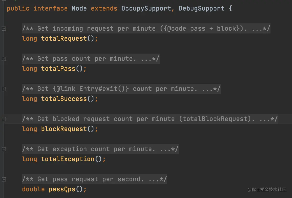 通过Node这个统计的类就知道有多少请求,成功多少个,失败多少个,qps是多少之类的。底层其实是使用到了滑动窗口算法。