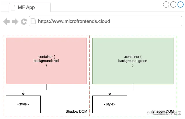 在自定义元素中,我们可以打开一个shadow root来将元素附加到专用的迷你文档,该迷你文档实际上与其父文档相互隔离。总的来说,这听起来是一个好主意,但与这里介绍的所有其他解决方案一样,并没有强制要求。 理想情况下,微前端可以自由决定如何实现组件。因此,实际的 Shadow DOM 集成必须由微前端完成。