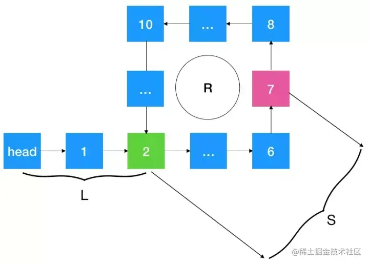 比如判断环的入口位置,画了一张图,配以简单的文字描述让大家看完瞬间豁然开朗!