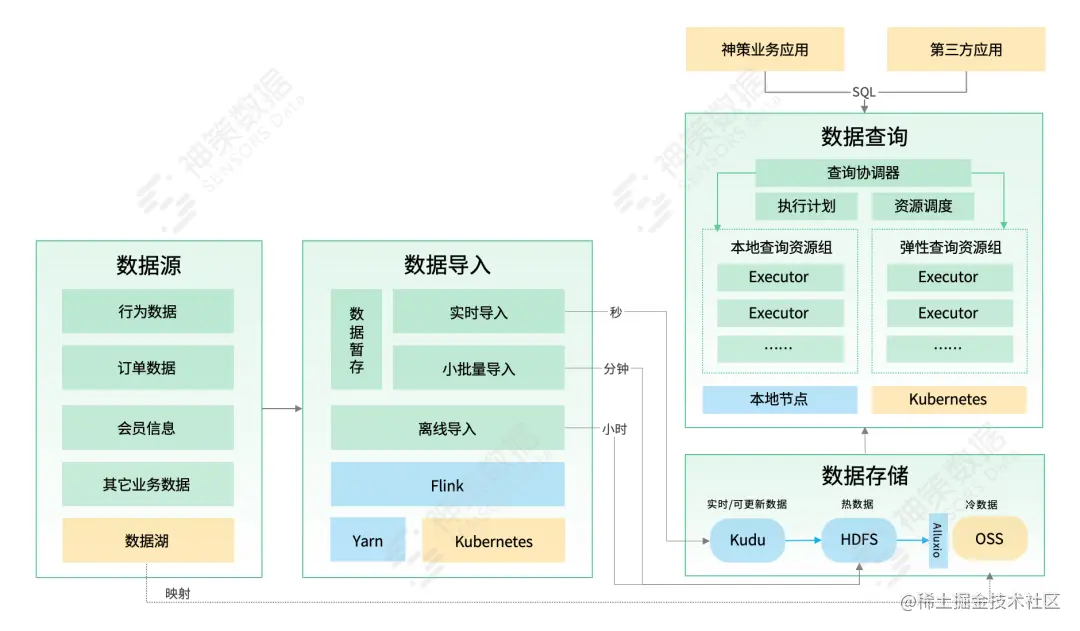 神策分析引擎是原生的存算分离架构,无论是不可变数据存储(HDFS、对象存储),还是可变数据存储(Kudu),都可以灵活的进行扩展。