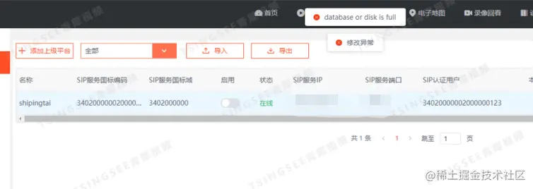 有用户反馈,在视频监控综合管理平台EasyCVR修改参数配置,提示报错“database or disk is full”,于是请求我们协助排查。