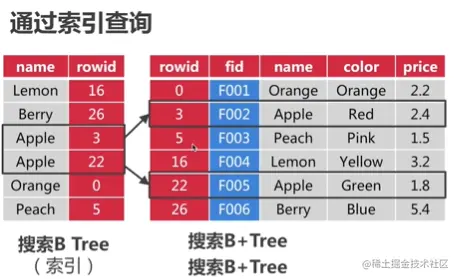 1. 首先,如果使用B树找到fid = "Orange_fid" 的rowid