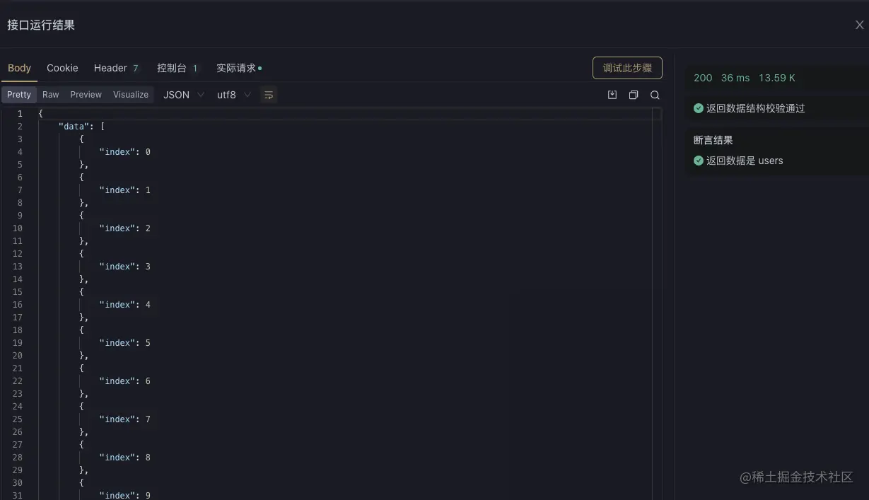 对接口运行结果还可以单独调试该步骤