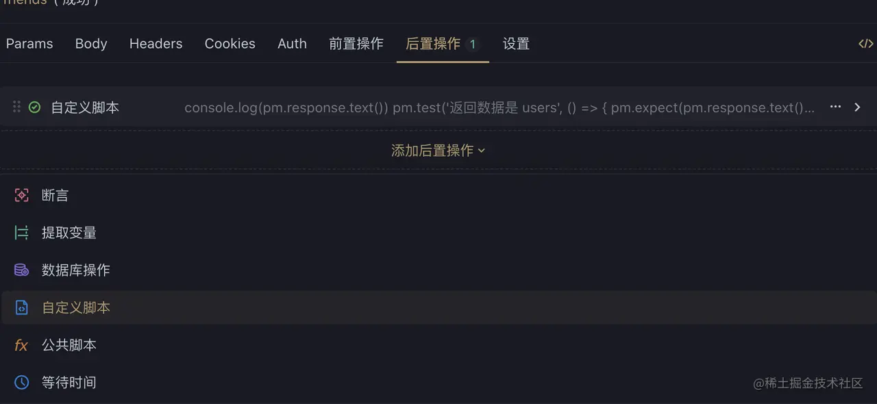 可以通过可视化的后置操作选项,更加清晰地添加断言校验脚本