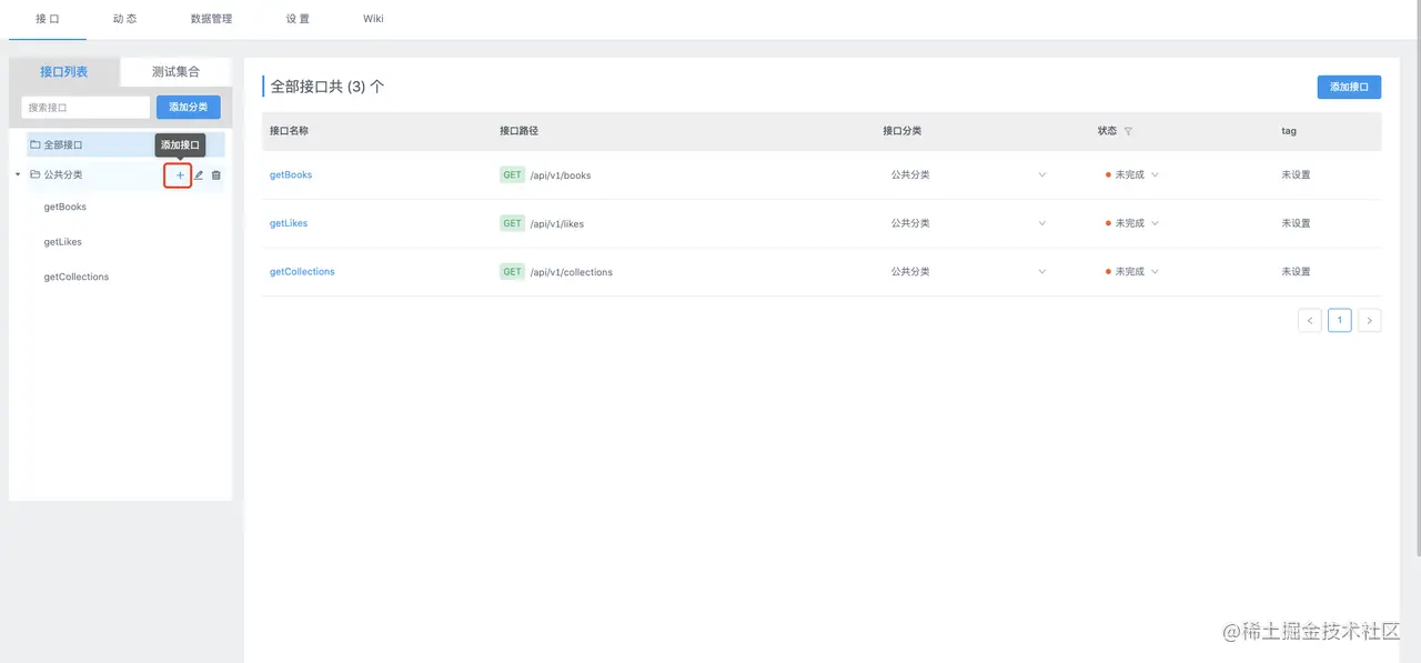 进入到 测试集合 并点击 导入接口